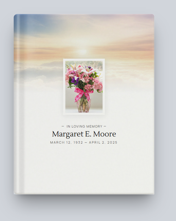 A beautifully bound keepsake book filled with memories and condolences from family and friends.