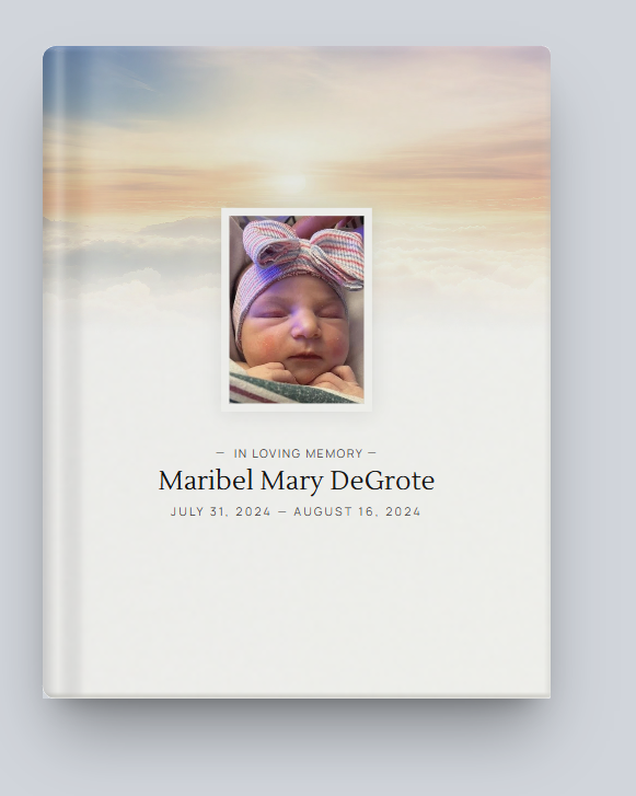 Maribel Mary DeGrote of Bloomingburg, NY, died on August 16, 2024, at Westchester Medical Center. She was sixteen days old. The daughter of Ciara Melendez Vargas and Owen DeGrote, she was born on July 31, 2024, in Valhalla, NY.
