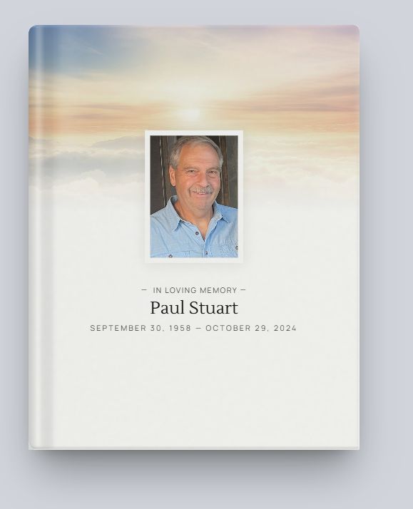 On Tuesday, October 29, at 10:47 AM, Paul Stuart peacefully passed on after a long battle with leukemia. He was in the presence of his fiancée and eldest son.